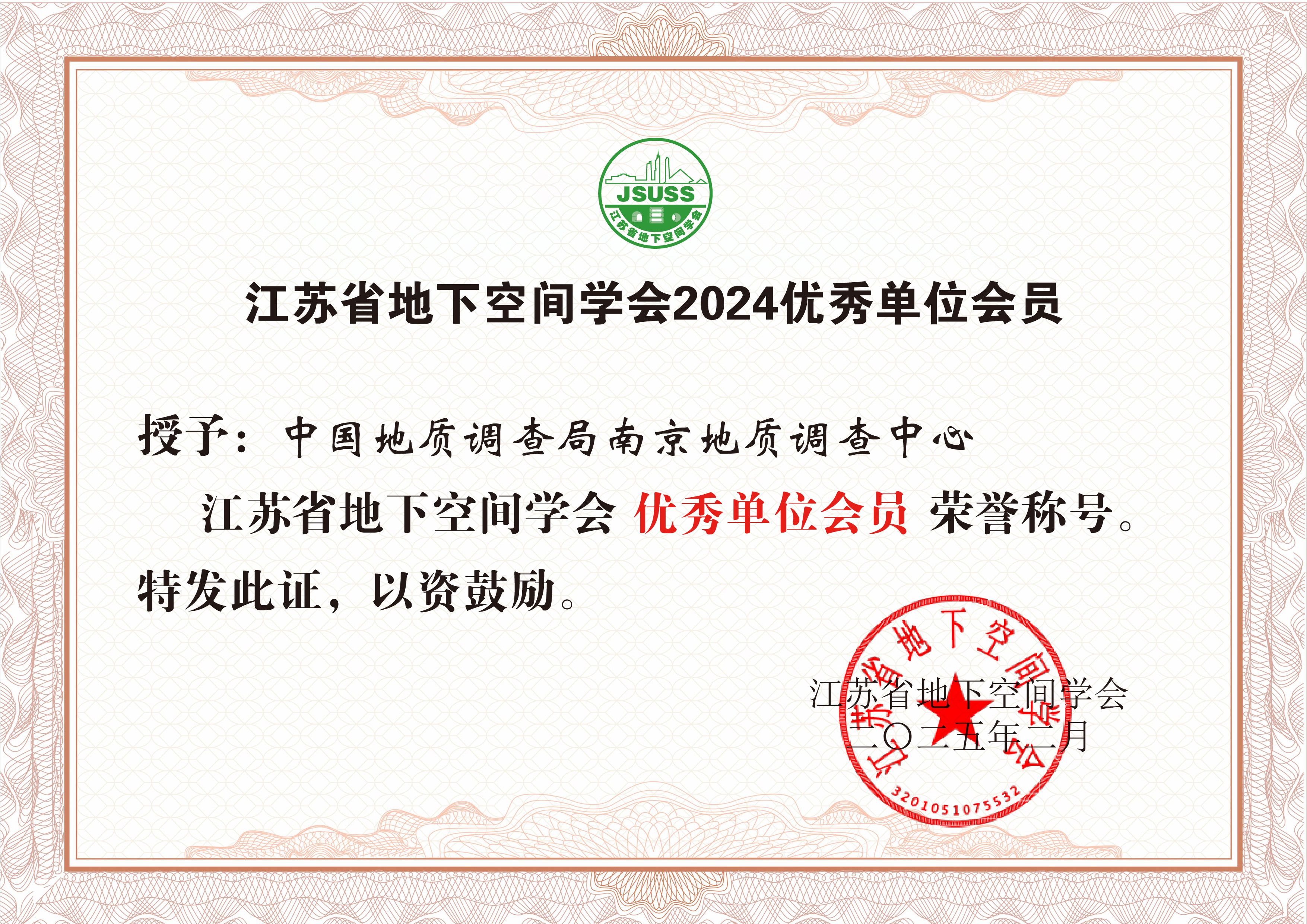 近日,江苏省地下空间学会公布了2024年度考评结果:中国地质调查局南京地质调查中心被评为“优秀会员单位”,依托南京地调中心建设的探测与评价专委会年度考核“优秀”,专委会秘书长李云峰被评为“优秀个人会员”。