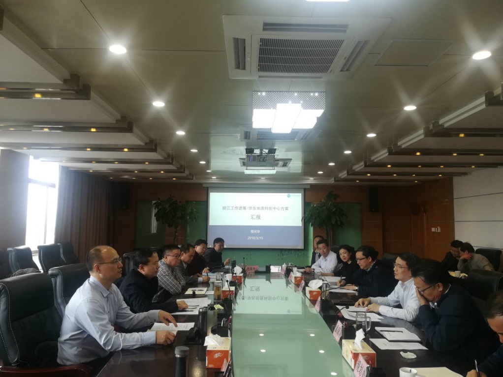 2018年3月15日,中国地质调查局南京地质调查中心(华东项目管理办公室)主任李基宏、党委书记张训华和副主任邢卫国一行到安徽省国土资源厅进行工作对接和需求调研。