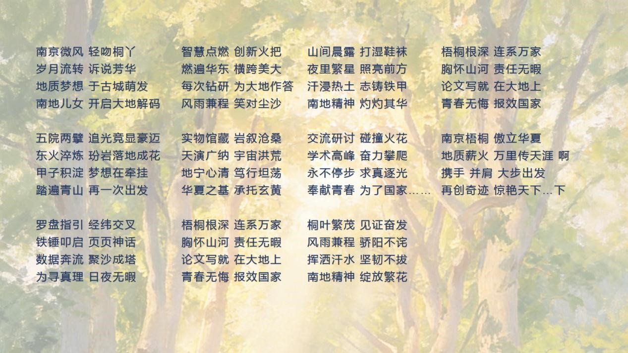 这可不是“流水线作品”!创作团队以南京地调中心门前的梧桐为切入点组织创作,每段旋律、每句歌词都藏着对地质事业的热爱,把野外艰辛化作诗意,唱出地质人“用脚步丈量山河”的浪漫与担当——梧桐扎根大地,也寓意南地人深耕行业、心系万家的坚守。南地人把个人坚守、行业传承与国家发展紧紧相连,六十余载的历史厚度,变成了奋进新时代的满满动力!
