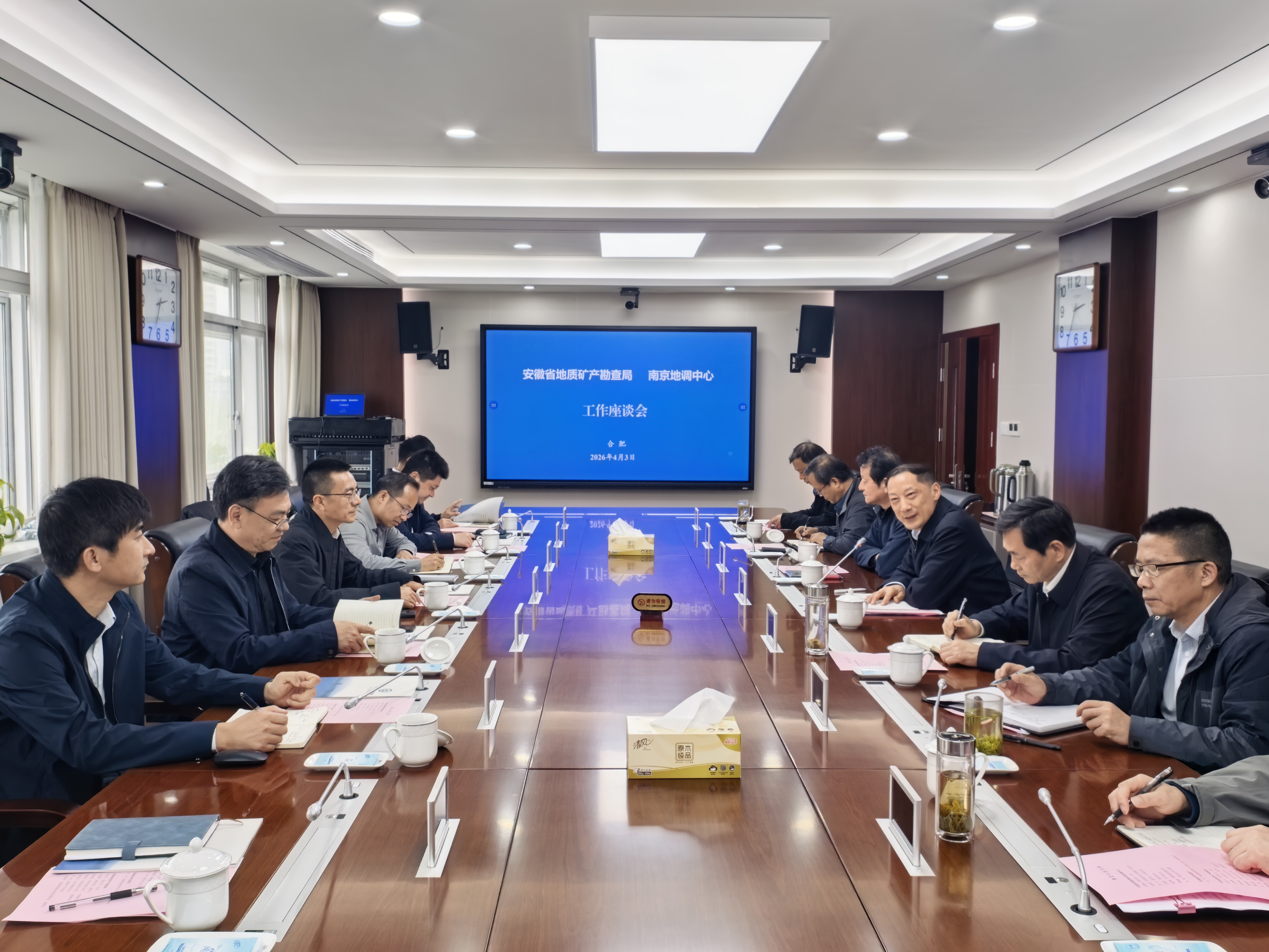 双方一致认为,南京地调中心与安徽省地质矿产勘查局合作基础良好。围绕新一轮找矿突破战略行动、深地专项实施、地质碳封存调查、水资源调查监测、地质灾害智能识别预警、高光谱数据库共建、清洁能源综合调查、人才交流与科技创新平台建设等领域,双方进行了深入交流。